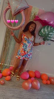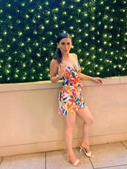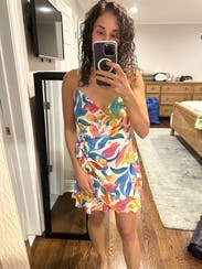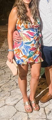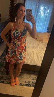 Dress fits TTS. Vibrant colors. Easy outfit - perfect for summer date night