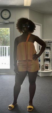 I wore this romper on a day with my family at the boardwalk. It’s very casual and really cute. Very light weight but not revealing, and more fun than sexy. Only complaint that if the waist was even a tad smaller I couldn’t have gotten it over my butt - and my butt is medium to flat - any more muscles and I wouldn’t have been able to put it on. I do think a small (versus XS) probably could’ve worked just the same though.