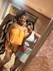 Perfect brunch outfit with my girlies. Wore while 33 weeks pregnant. RTR kept me cute my entire pregnancy. Size XL