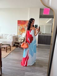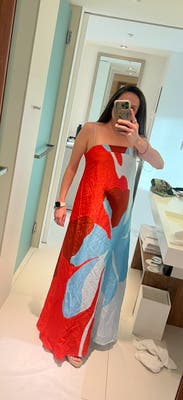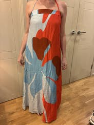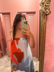 rent this dress!!!! I wore it on vacation and it was so easy to throw on. I was obsessed with the colorful floral pattern and loved how bright and saturated it was. The boxy fit was perfect for a vacation focused on walking around and eating and drinking, and the material was light and airy and perfect for a hot day.