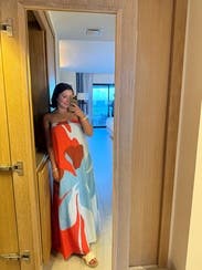 Super fun and flowy- comfortable. Wore on vacation with flats, I’m 5’7 and it was almost too long without heels- although the top straps are adjustable it helped with the length some. I probably could have worn the medium or large because straps adjusted