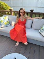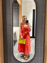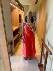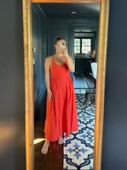 I enjoyed the dress was nice and breezy, the only down fall was the cleavage. Not super flattering for me and the tie in the back is pretty but was hard to keep the neck from loosening too much had to adjust a bunch. Better for someone with a smaller chest, but was a nice effortless pop of color!