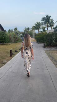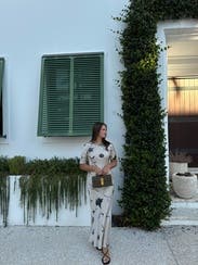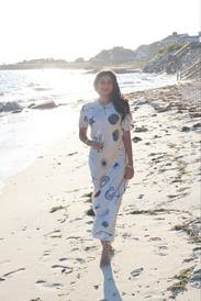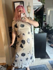 I absolutely loved this dress! It was the perfect choice for a sunset stroll at a vineyard event. The material was breathable and moved beautifully with every step, making it both comfortable and flattering. The ocean-inspired print added a playful and unique touch that stood out without being too loud. I paired it with simple black sandals and rented the Poolside Josie knit bag; received so many compliments!