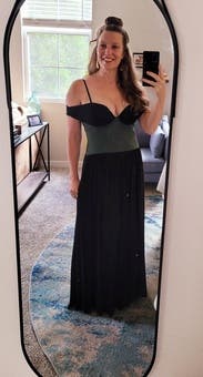 Loved this dress but the fit was a little tricky. I expected to be a M but was very glad I got a backup L. The cups are on the small side but they have a push up effect so I still felt pretty much secure and the girls looked great. Adjustable straps helped too. I was surprised by the weight of the skirt, the dress is quite heavy. It was also FLOOR LENGTH for me at 5’6’. My toes barely poked out wearing heels. The sash is also not attached in the back so I needed to safety pin it so it didn’t keep popping up around my neck. Overall loved the dress, I got lots of compliments (and a groomsman’s number) just some things to know!