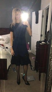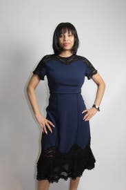 This was a back up dress. Pretty, but not for me. Sadly, the first choice dress was a fail, too. This dress is navy with black lace. Not 100% black. The dress fit everywhere except for the chest. I am busty and this squashed the girls into one big mass. Nice material, great length. Size up if you are well endowed!