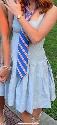 Sweet baby blue dress. Very nice fabric. Runs very small. I wear a 4/6 and had to swap for a 10.