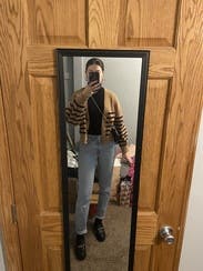 For work I wore this over a black T-shirt with work slacks and a sneaker. Weekend was with the jeans goes well with a loader and socks. Could also be cute in warmer areas buttoned up with nothing under!