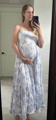 This dress has been my summer go-to - perfect for pregnancy! I just wouldn’t recommend for a long day in super hot temperatures since it’s long and not super lightweight but it does float away from the body so is still nice for a warm day.