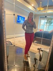 I really enjoyed this top. It was a little loose as I have been on a weight loss journey, but I still enjoyed it. The only issues I had were the lining kept peeking out from the hem and at the edge of the sleeves…it looked like just a part of the top though, so I didn’t stress over it. Most tops, I can wear a 16-18, so take that into consideration…some other reviews suggested going up in size and while I think I could have gone with the next size down, it definitely would have been more fitted. At the time of this photo, I weighed in at 214 and I am 5’7”. I would rent this again