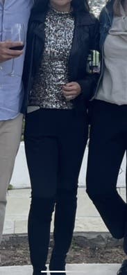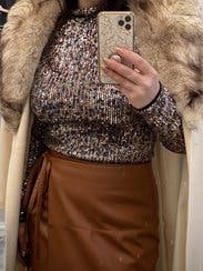 Loved this sparkly top! It wasn’t itchy at all (super soft actually) and paired well with my leather jacket.