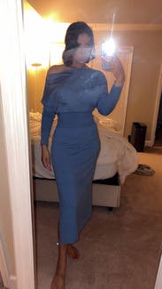 This dress was a great fit! It hugs you in all the right areas. It's very versatile. From the office to date night. Can be worn for date night on a Friday evening with platform sandals or casually with a pair of sneakers or flats.