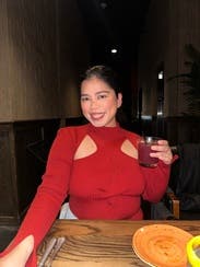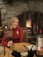 I needed to wear a strapless with this. It looked great with jeans and booties for a casual dinner. I felt great in it and it’s flattering. I wish I took a picture. It’s a deep red color and is a tight knit. I’d like it to be a tad longer - it hit right at the top of my jeans thanks to that weight I gained over Christmas. I’ll rent it again when I take off the 5 lbs!