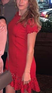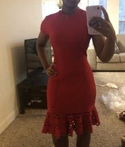 I lost count of how many people complimented this dress, 10+. Worn to work and then drinks after. A little tight around the neck but stretchy enough that it didn't bother me too much. The lace started right below my butt so had to pull it down a bit to cover myself. Overall great rental.