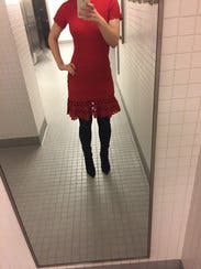 I was excited to wear this dress because it's so unique, but it was really short in the back (at least above the cutouts). I wore opaque tights but I was still pulling the dress down all day! My other complaint is that it wrinkled a bit by the end of the day.