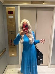 Sad I don't have a better picture of this dress, but I got a lot of compliments on it! I recommend shapewear to smooth out the lines on the dress, but it's overall very flattering and the color is very bright in person. Feels and looks expensive!