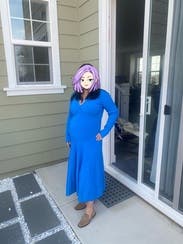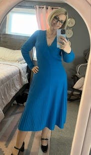 Rented this for my sister's confirmation and loved it so much I wore it to my birthday dinner and to church again on Sunday! The ideal blue hue, comfortable fabric and length. Pair with boots and you're set for any winter event.