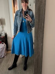 Really loved this one! The blue was brilliant, and the cut was flattering. Works for winter or fall work (thick fabric) but still felt cute and sexy.