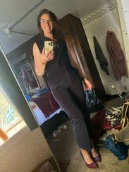 I felt fabulous in this velvet jumpsuit. I had to size up (one) and the length was (still) a little short, but it felt and fit great. Very comfortable. I wore a navy shirt underneath and loved the pockets.