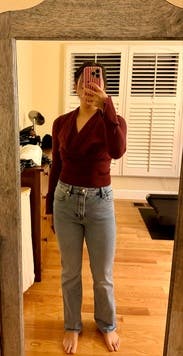 Love the beautiful wine color for the fall. Was a little big on me, but I got the M as the S was not available. The opening by the sleeves is pretty cool too. Would look good with jeans or black leather pants/skirt too. Not sure I would pay more than $50 for this shirt, but worth the rent!
