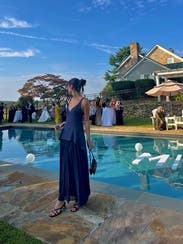 This was a cute dress but not super for me. It was tight on the boobs and straps, but it would’ve still been wearable for the event! Made my hips look a little wide I think but was super flowy on the pleated part which was fun! Ended up wearing a dif dress I rented!