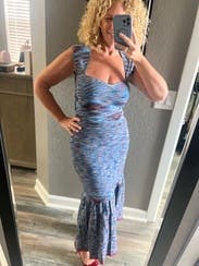 I loved it after I figure out how to keep the girls in place!! I usually don’t like to wear clothes that show cleavage or fully cover my breast. I loved this pattern and had to figure it out. So I purchased those adhesive bras made for backless dresses. It allowed the top of the bra not to show. I had tried a strapless bra but bc of my cup size it still peeked from the top. I did have to adjust the dress before every photo but it was a beautiful look. For that reason, I’ll be returning. But I did look absolutely stunning!!