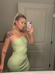 Green knit (80% Rayon, 20% Nylon). Sheath. Halter neck. Sleeveless. Tie closure. Imported.