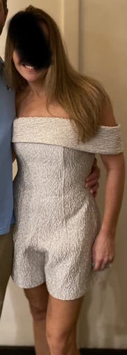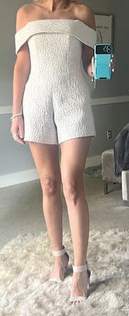 As a tall girl (I’m actually 5’8.5” thank you very much 😆) the first thing I always check on rompers is if the length works. Definitely good on this one. Was super comfortable. Don’t think I wore a bra. Dressed it down a bit with flats and little jacket for dinner. Fabric is texture and interesting. Versatile, high end, comfy.