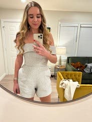 This fit so well. I was concerned about the top staying up and the shorts making my legs look blah but everything about this outfit was great! Had a great time wearing it because I wasn’t self conscious about it. The top was very structured and stayed up and the shorts were fine. I could have personally used some crazy pink high heels but the low key fiesta strappy flats were fine. The belt helped give it some definition.