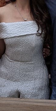 Flattering and beautiful outfit. Only thing is the difficulty zipping it off alone if needing to use the restroom.