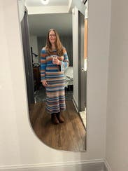 This warm, snuggly sweater dress was perfection! The colors are amazing for fall, and since the dress is rather heavy, it falls so nicely!