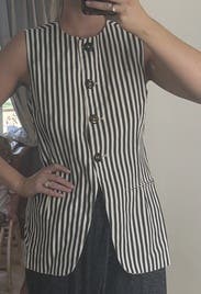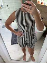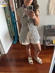 Love this top, nicely structured and fitted. May not work for a generous bustline, fyi! Loved it with the shorts, but they were at a different “wear” level so beware. They won’t always match.