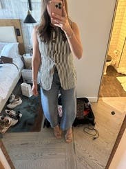 I can't tell you how much I loved this top. I wanted to purchase it so badly! It was so perfect for a day in London. It was rainy and cold but I couldn't bring myself to cover it up. Wore it with jeans and sneakers. The arm holes gaped a little, but I didn't mind it at all. If it ever goes on sale I will be adding it to my closet. Wish I had a better photo!