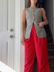 The top is amazing. I never got to wear it as a set but it works great as a standalone top for work or fun. Material is thick enough so that even with it being linen the top doesn't wrinkle as much.