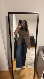 I love this vest!! Its amazing and so flattering. It’s more of a longer vest on the back.
