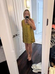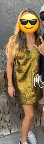 I loved wearing this mini shift dress, it was so effortless and festive. It is a bit more shiny in person and I loved it.