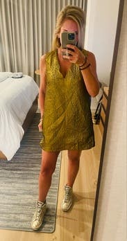 Wore this to Red Clay Strays! LOTS of compliments! So much so, my husband just laughs. Never fails #thanksitsRTR! The only down, I could not get the wrinkles out. It’s meant to have a crinkle effect, but the deep wrinkles were too set. Upside- POCKETS 😍 -it was shorter than I normally would wear, but for the occasion it was perfect. Be great for holidays/NYE as well, just fancy it up!