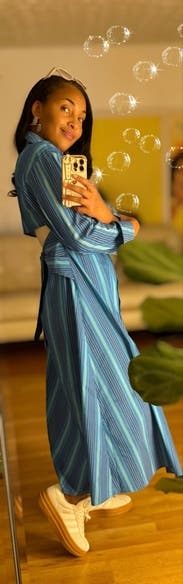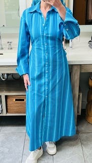 Such a fun dress with a great ankle length for me at 5’11”. The open back wasn’t super flattering on me, but can be made smaller with some clever tie placement or with layering a top underneath. Easy to wear casually or dress up. Would rent again, but not a buy for me.