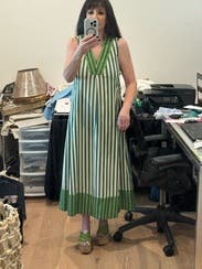 I loved this dress. I rented it for a beach vacation and loved how easy and breezy it was to wear. I ended up buying it because the quality is great and it’s just really fun. I’ve already worn it while running errands and brunch. It’s a great rental (and purchase) piece!