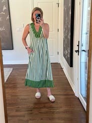 Such a versatile spring/summer dress! I wore this to brunch at a golf course (perfect for the masters or a tournament) and also to work with a jacket. Fabric doesn’t wrinkle, feels super high end, pattern is perfection. Considering buying this one, it’s a staple ‘throw on dress’ that I can’t seem to return quite yet! More photo & video reviews @whimzylindzy