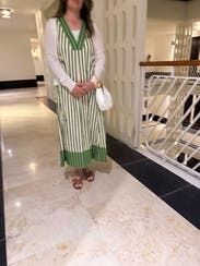 Wore this dress casually - running errands, grabbing lunch with friends, etc. and it stands out at every occasion. Light material and not too boxy of a shape when on. Can’t wait to rent this again.