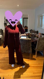 I was working from home during a freezing month and bad work month and wanted to treat myself to comfy loungewear. This was a nice set for everyday. The large hand holes made it difficult to do things like dishes bc they didn’t roll up easily, but otherwise it worked out well.
