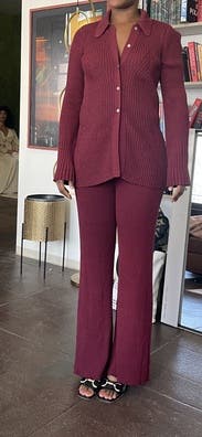 Very stylish set, the knitwear is also extremely soft. The bell sleeves stretch out as the day goes on, and are very long. If you wash your hands they get in the way, and if they get wet they stretch.