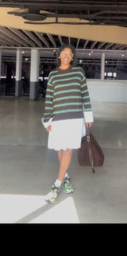 This dress is perfect for the office! The hemline was longer than expected but actually provides great coverage and makes it office appropriate. The sleeve slits add a chic touch. The skirt part is slightly sheer but since the sweater is so long it offers coverage and with the right undergarments, it’s a non-issue. I definitely recommend layering a tee under the sweater if you're are sensitive to itchy fabrics. Overall, with nude undergarments and a great layering tee this rental became a star in my rotation.