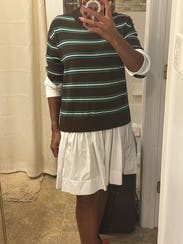 So much potential but not cute - it just hangs and not in a good way. Perhaps I would have liked it better if I had sized down. That said, the sweater top seemed odd with the bright white cotton bottom. Back to RTR with the tags on.