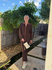 The Simon Miller top was such a fun, structured piece — I loved the bold print and the contrast trim details. I rented a size M, which gave it that relaxed, slightly oversized look, but I think I’d go with a small next time for a closer fit through the shoulders and torso. The fabric drapes nicely without feeling stiff, and it pairs perfectly with the matching pants or styled open over a tank for a more casual vibe.