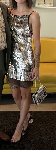 Wore this to an Odesza concert and got tons of compliments! Not the most fun to sit it because of the sequins and it's a bit short, but I wasn't sitting much at the concert 💃 I wore a strapless bra and I used fashion tape to tape up the mesh lining which I wasn't a fan of.