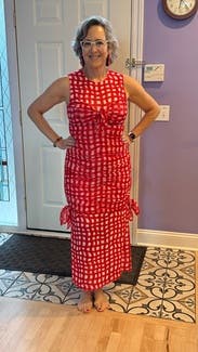 I am SO glad I chose a Medium. I must have read the reviews carefully… because THIS FIT JUST RIGHT! And I’m not often a Medium in dresses. I wore this on ‘traveling’ day - meaning 12 hours in a car!!! And it survived and was comfortable. (The last 5 hours, I did have to slip the bra off, sliding it out from under. And STILL I was ‘secure’ and held-in enough by the stretch of the dress, and great tailoring.) It was flattering and fun!