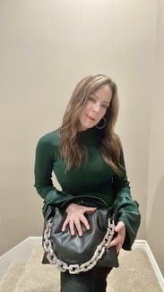 I love this bag so much that I had to keep it. Not an every day bag, the chain is on the heavier side but definitely added to a simple date night outfit.