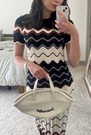 The Simon Miller Mini Mercado Tote is a playful yet stylish bag with a unique shape and textured finish. Carry it with a casual outfit or elevate a simple dress with a fun, standout accessory.