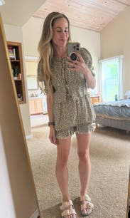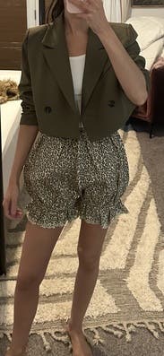 I’m kind of obsessed. The set was a little too much going on for me. But individually, the pieces are so cute and versatile. I’m wearing the shorts on vacation to throw on before and after beach to go to lunch. Will do a lil white tank over top. The leg elastic is very stretchy, not restricting at all. TTS. Lots of fabric so def size down if between sizes.